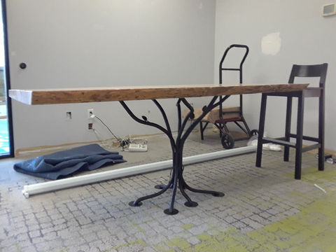 Tracery’s master craftsmen created a conversation area with a rustic, natural ash, split-board river table with a wrought iron floral motif base and coordinating counter. The beautiful new conversation space promotes group communication and self-reflection and embraces the interaction of community and nature.